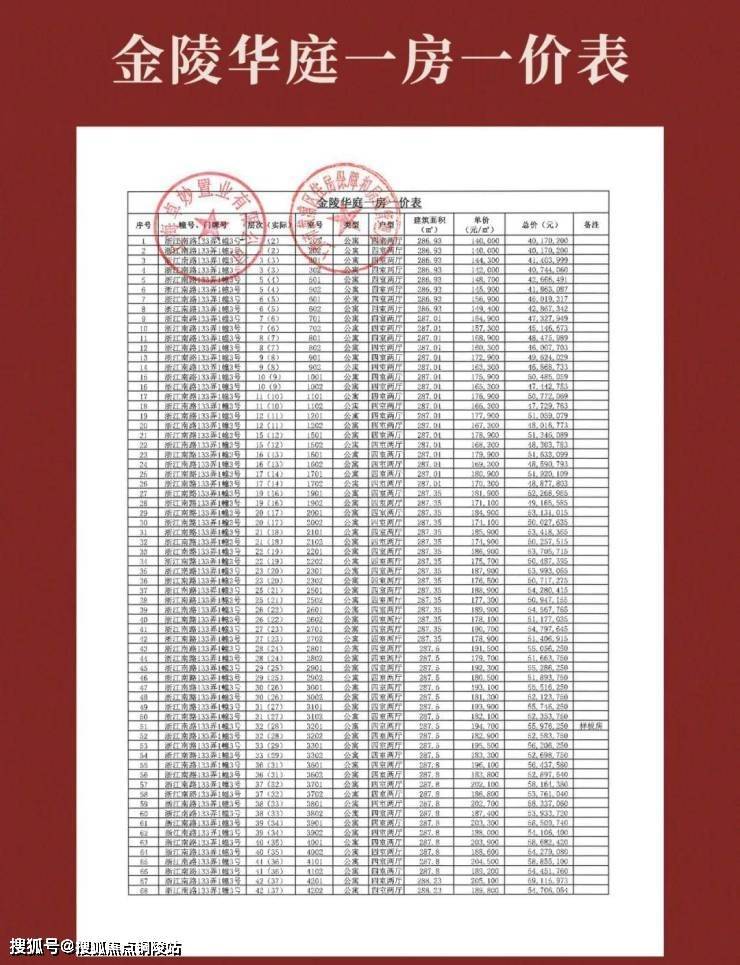 【金陵华庭】一期一房一价表