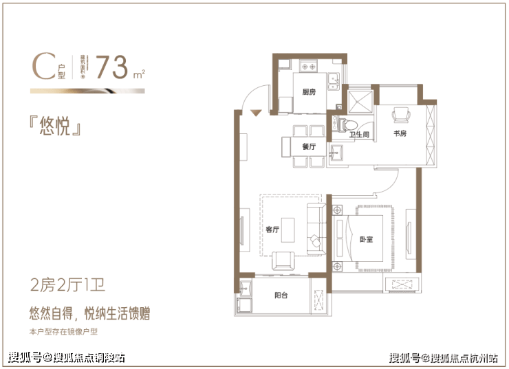 建面约73㎡悠然两房:悦纳生活馈赠