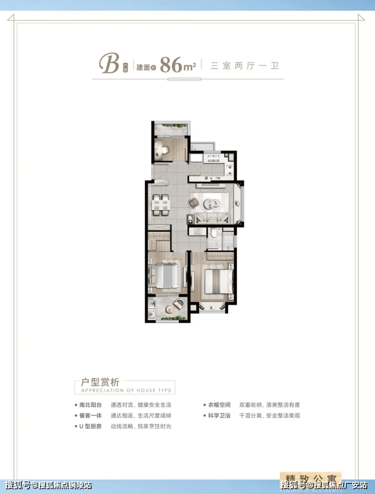 户型设计实用:高层主力户型如86㎡三房,实现双开间朝南、双阳台、270°飘窗,得房率75%-79%,空间利用率高。