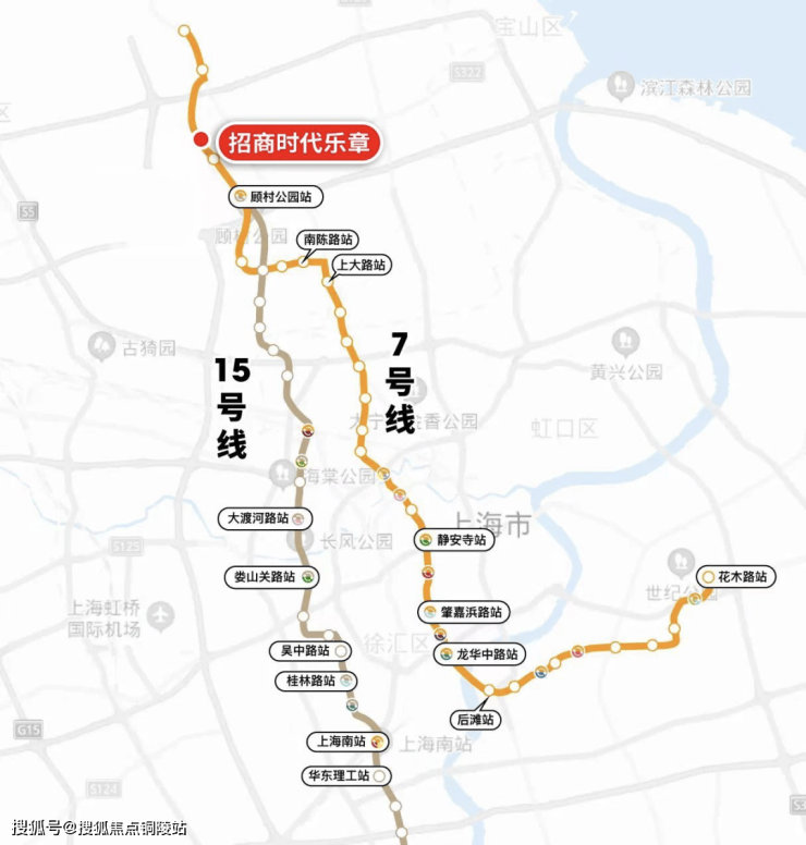 值得一提,在7号线潘广路站坐2站就能到顾村公园站,换乘15号线能便捷到达长风、长宁、漕河泾,甚至紫竹高新区等多个沪上高能级商务区。同时,在远期规划中,宝嘉线也会在潘广路站设置站点。