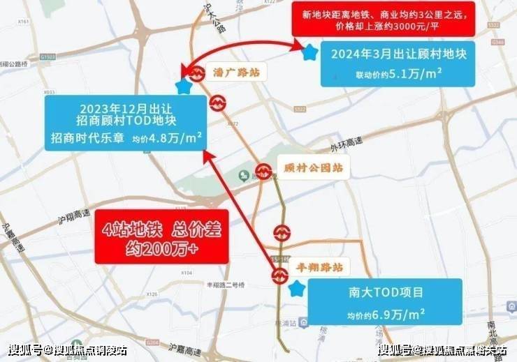 2024年一批次土拍中,顾村板块内新地块联动价格为5.1万/㎡,上调了3000元/㎡!而该地块距离地铁商业均在3KM左右!