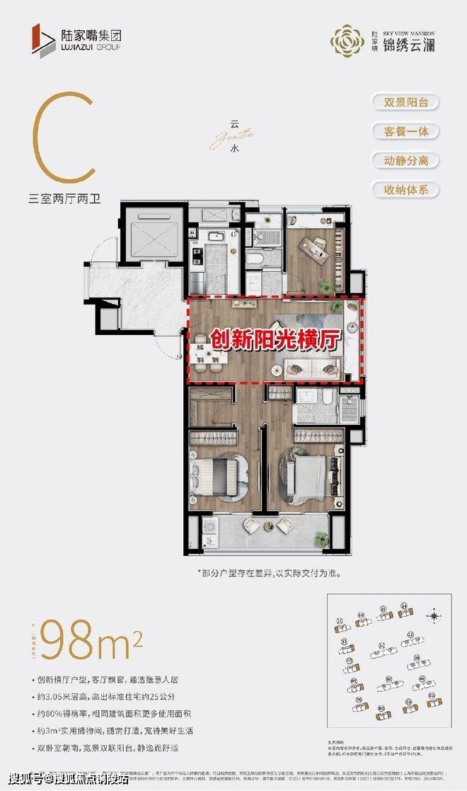 第二,创新横厅+双联阳台。