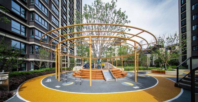 增加大量儿童游乐设施,享受“鲲鹏乐园”主题儿童乐园、鲲鹏书院、老人颐乐空间等全龄共享的活力空间,塑胶软性地坪倒圆角处理,更安全。