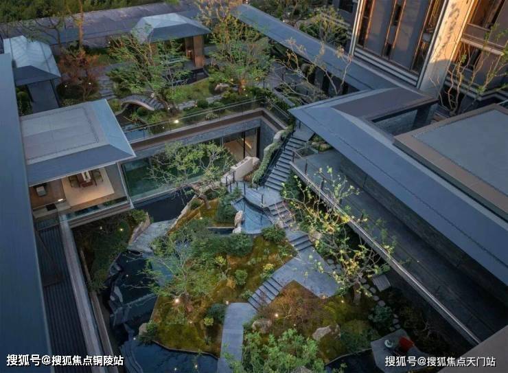这点在项目的下沉式庭院里,感受尤为真切。借助下沉式庭院与一层地面的高差变化与围合空间的处理,打造一处 垂直的立体花园,每一步都有新的视觉体验。