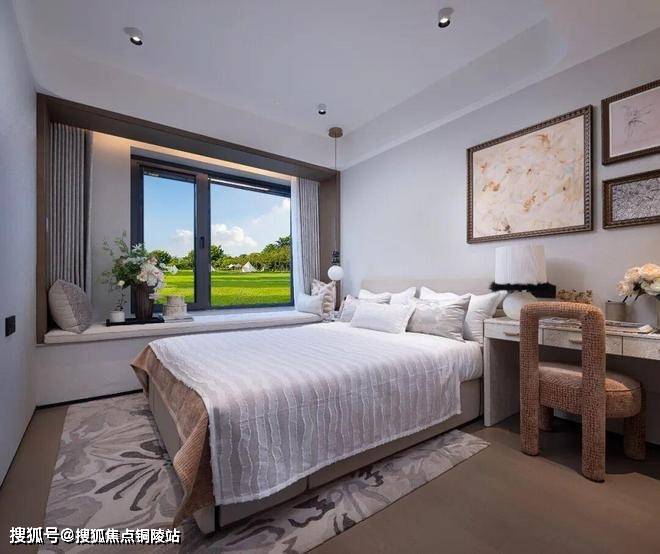 该户型大量的飘窗+双阳台设计,保证了每个功能间的通风采光,也提升了户型的实得率,其中次卧阳台采用非承重结构,空间可以达到接近主卧的尺度,对传统户型形成跨越式的降维打击。