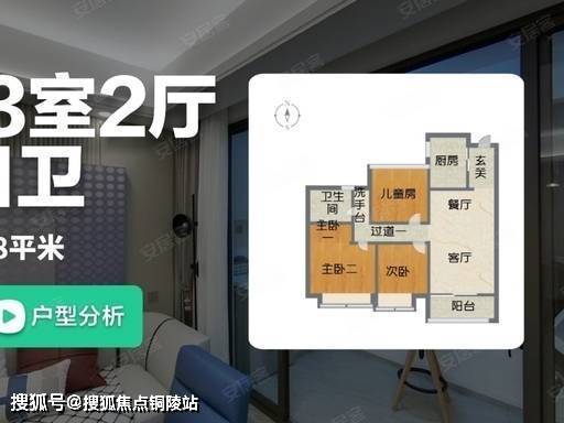 2. 建面约 88㎡三房两厅一卫 —— 三口之家,实用之选