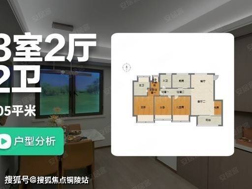 4. 建面约 105㎡三房两厅两卫 —— 宽境舒居,四开间朝南