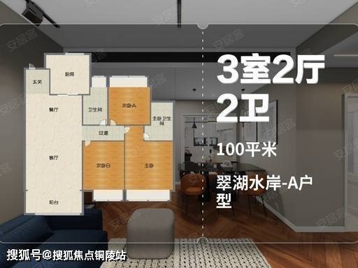 3. 建面约 100㎡三房两厅两卫 —— 二胎家庭,舒适改善