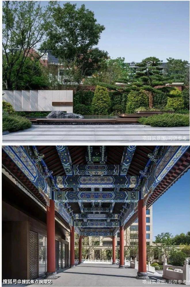 一重仪式门庭以典雅酒店美学为基调,淬炼出独具气宇的门庭;人行归家结合风雨连廊,步履生韵,动静相宜;