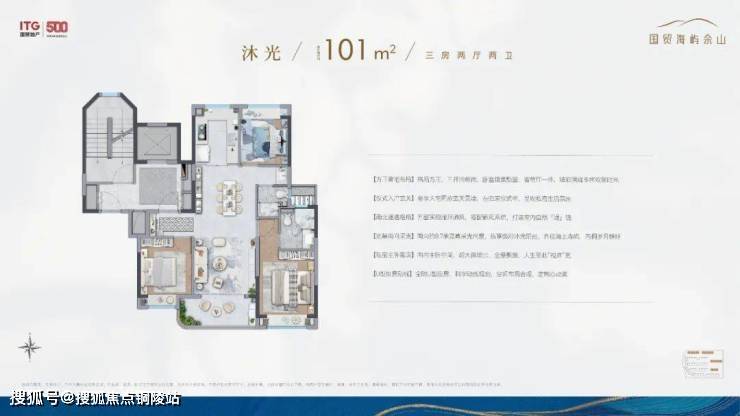 在户型规划上更是凭借小高层无连廊+飞机户型的设计优势,将室内的实际使用空间做到了最大。所以,虽然户型的建筑面积是约101㎡的3房,但整个空间的尺度感却能匹配改善型的宽绰3房。