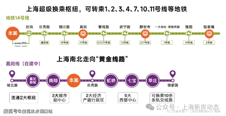 交通能级不断跃升:14号线和嘉闵线(在建中)双轨交汇,步行约200米14号线地铁口,14号线为高能级地铁线,5站普陀,30分钟直达静安,且始发有座,出行舒适;黄金走廊嘉闵线加速建设,约3站虹桥枢纽,未来可速达七宝、徐家汇、莘庄等核心区域。项目周边开泰路即将建成,绿野谷二期路段、骏达路、童家桥路、昌瑞路、涟澜路已启动建设,预计2026年建成。