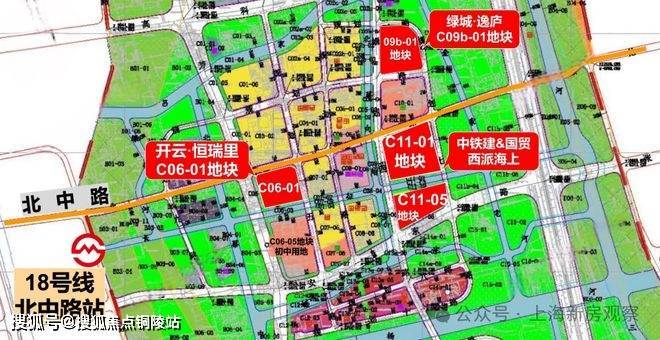 地块位于北中路北侧,紧邻C10-01的小学规划用地。不过,该地块距离现有的地铁站略远,与18号线北中路站约900米。