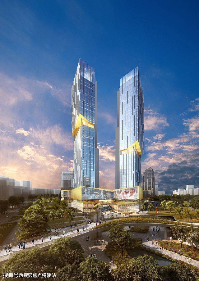 以海派建筑风格、塔冠造型,致敬城市经典。极致线条勾勒,金属铝板与大面积玻璃搭配,辅以香槟色与灰色系色彩,彰显建筑立面的鎏金质感与美学。