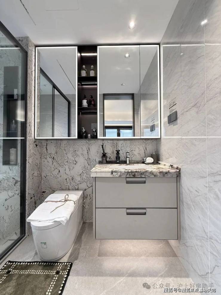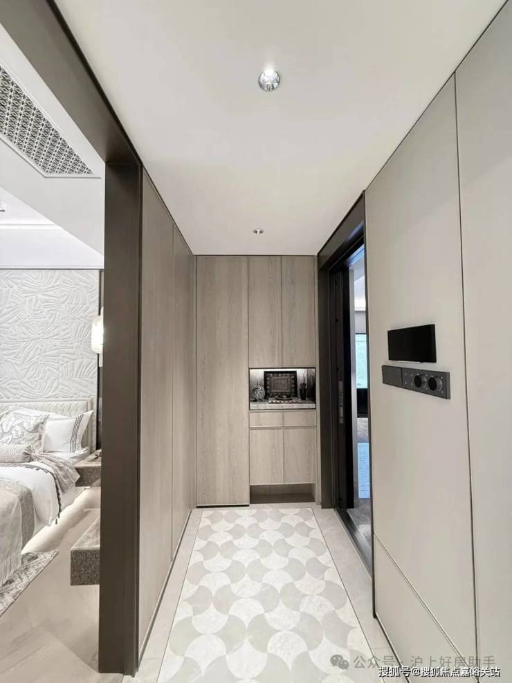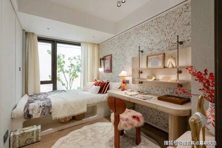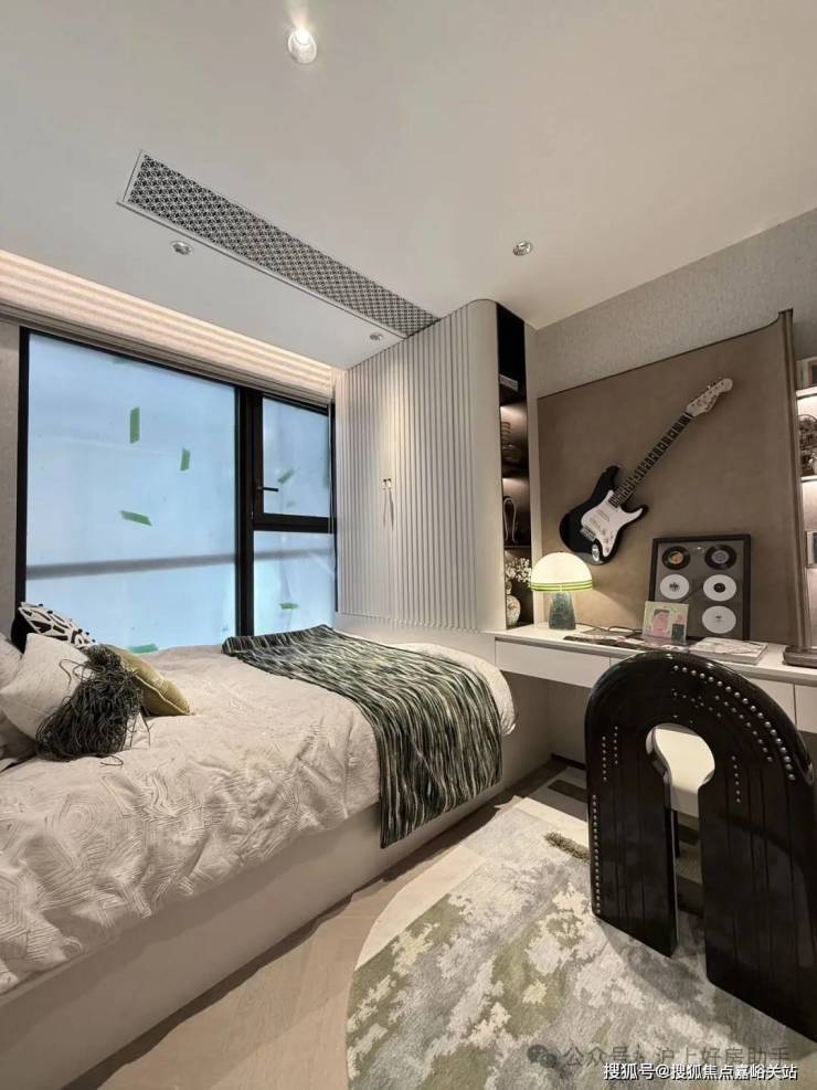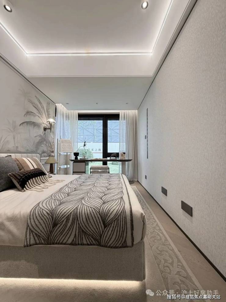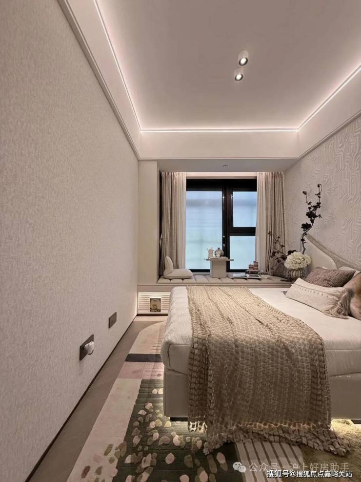 豪华的套房设计,北侧卫浴飘窗+南向床边双飘窗的设计,更是把这个空间的视野和收纳空间延展开来,尺度感真的很惊人。