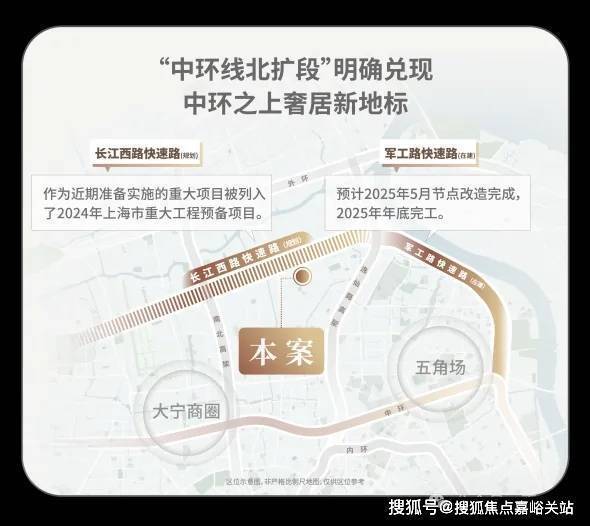 中环线北扩段明确兑现,军工路快速路25年开工,长江西路快速路列入上海市重大工程清单预备项目,快速链通城心,随着中环线北扩段的政策明确,淞南将正式进入中环时间。未来经逸仙高架,进入南北高架、内环高架、中环高架,可快速链通南北上海;多维立体路网全面升级,未来区域价值再攀新高。