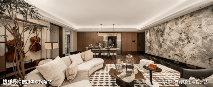 翎翠滨江通过大量的奢石、隐藏式细节将整个室内打造成了艺术的殿堂。