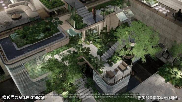 社区景观方面,项目运用室内手法室外化设计构想,将垂直景墙、悬浮观景台与叠水景观立体穿插,形成情随境转的沉浸式体验,自然元素渗透进室内,并与室内空间动态互动。