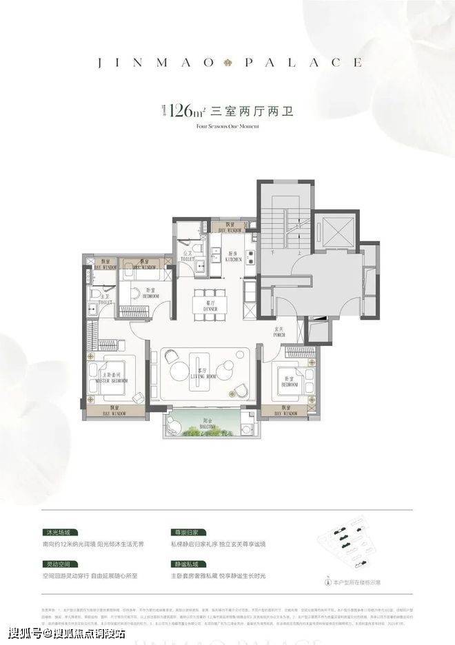 产品方面,推出建面约110-190㎡3至4房产品,四种户型的飘窗与阳台空间都比较大。110㎡户型的阳台将次卧和客厅联通;123㎡是横厅设计;140㎡足足有七个飘窗空间;185㎡各个房间的空间更上一层。