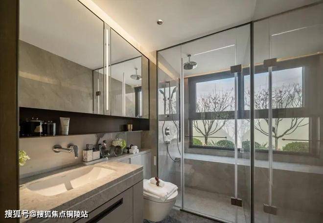 在建筑立面上,通透玻璃幕墙叠加铝板,缔就钻感镜幕墙,「江湾之钻」钻感面屏+大窗墙比,地标艺术美学,境启全新奢宅风尚。