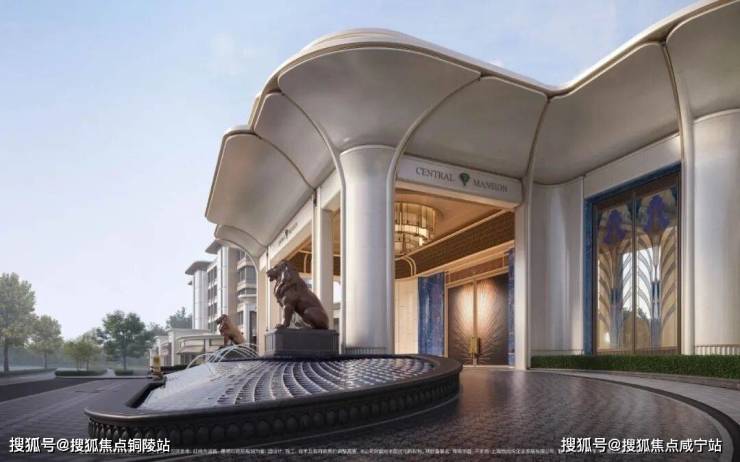 「玉兰门庭」摩登飘逸,环抱式落客前场,大师定制非遗掐丝珐琅门钹,流转温润光华,敬呈归家尊崇礼序,自此启幕生活的华贵序章。