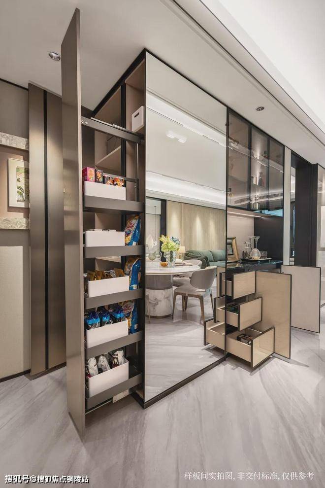 入户交付玄关柜+整墙收纳柜,餐边柜、抽拉的薄柜同样为交付标准:
