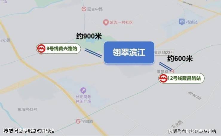 项目南向直线距离12号线隆昌路站约600米,步行可至;北向直线距离8号线黄兴路站约900米,同样步行可至。