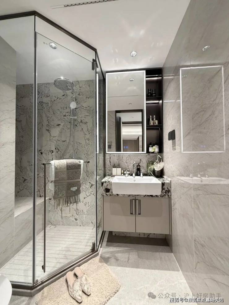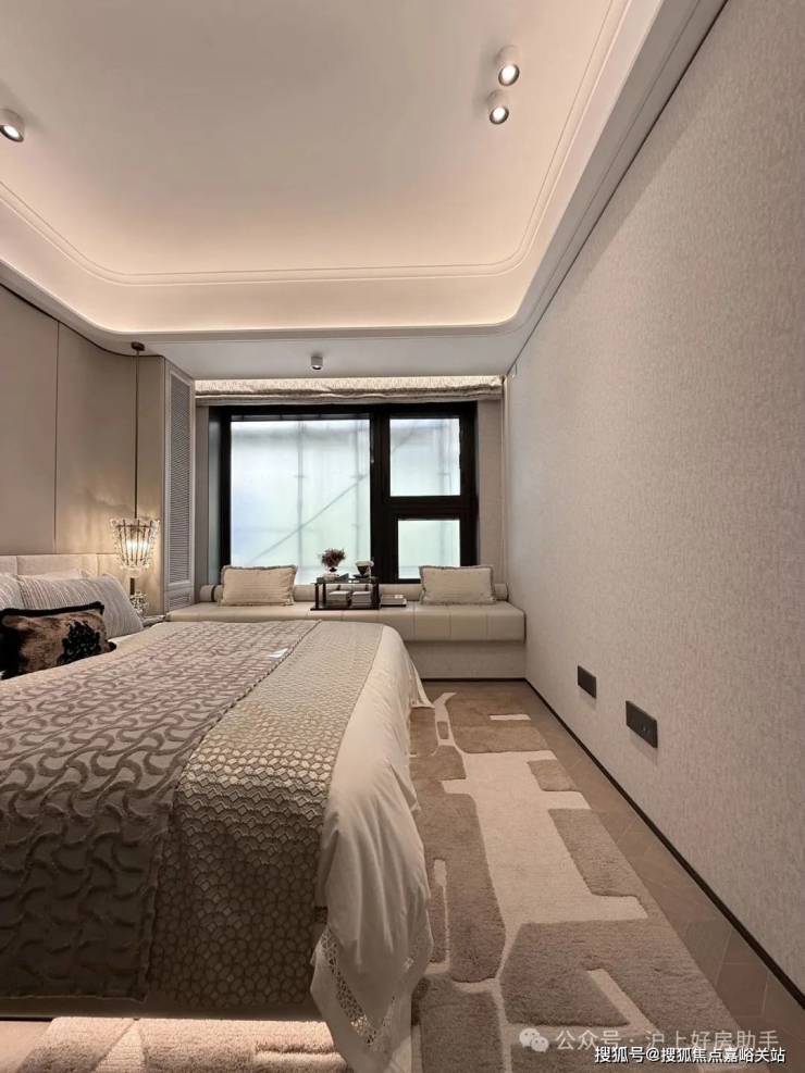 豪华的套房设计,北侧卫浴飘窗+南向床边双飘窗的设计,更是把这个空间的视野和收纳空间延展开来,尺度感真的很惊人。