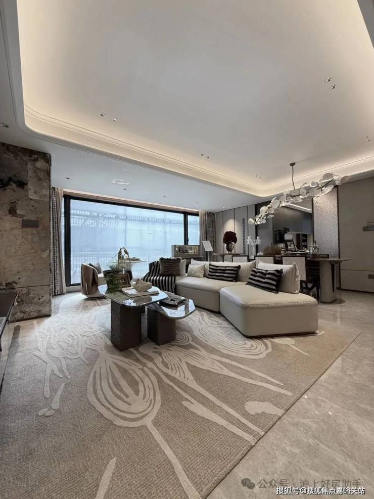 双轴线的设计,充分拓宽了视野面与观赏点位,环形回廊、精神游廊与下沉庭院通过立体景观平台相融,又创造出隔岸听泉的诗意场景。在每个重要生活触点,业主都能拥享独特景观和欣赏视野。