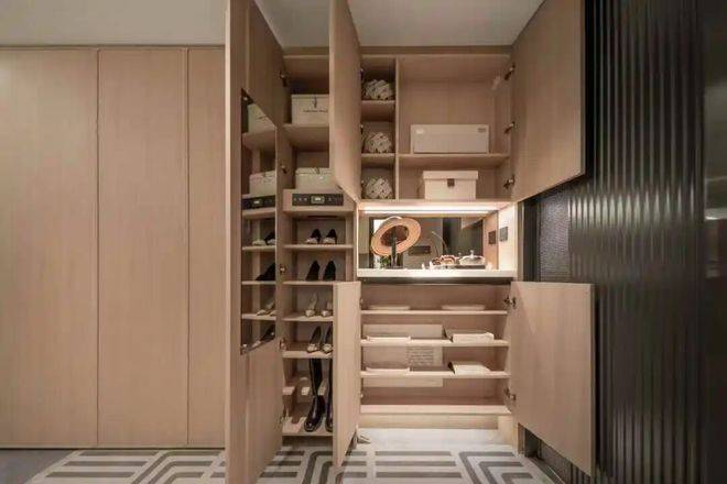 入户门厅以弧形悬浮顶棚为特色,为业主带来柔和温润的归家关怀,让归家的每一步都充满舒适与惬意。