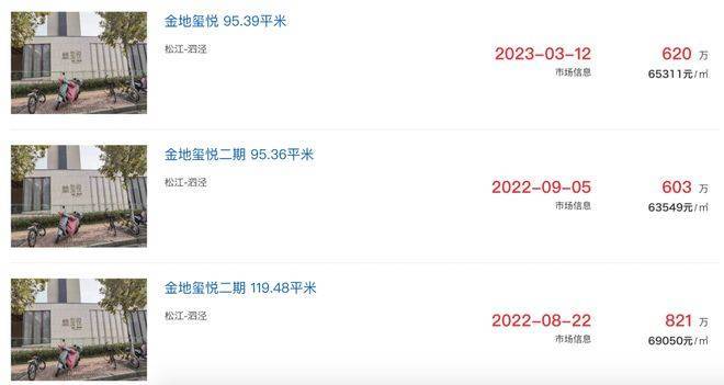 其他次新小区,比如泗泾大盘金地玺悦,二手房成交价也都在6.3-6.9万/㎡之间。