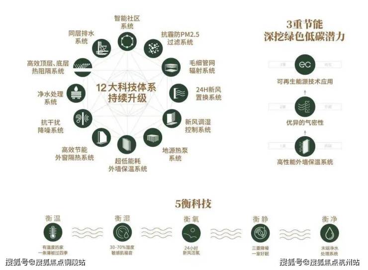 围绕阳光、水、温度、湿度、声音、空气六大环境要素,构建的12大科技系统,带来全面领先于市场的衡温、衡湿、衡氧、衡静、衡净五衡居住体验,打造更适合中国人的健康智慧科技社区。