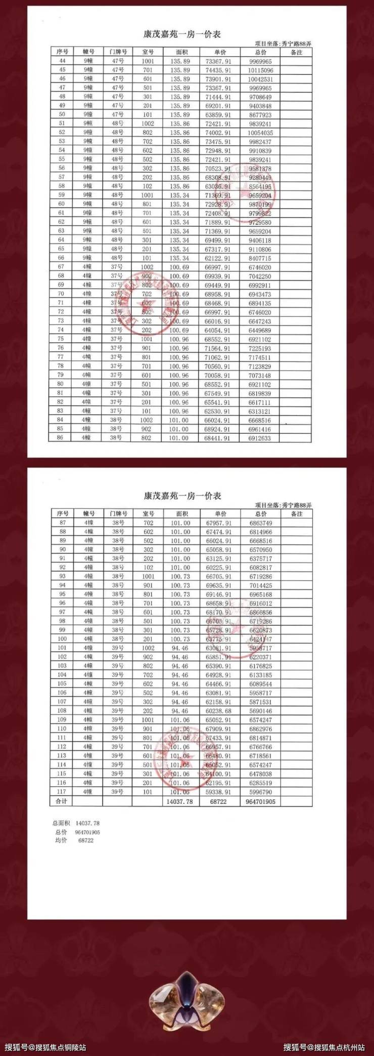 最新一房一价表曝光: