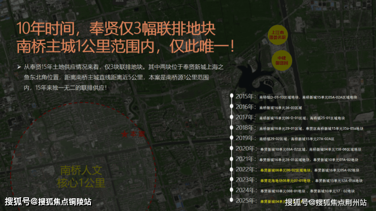 翻看奉贤近十年的土地出让史,一个清晰的结论摆在面前:主城核芯一公里内,低密联排地块几乎是空白!
