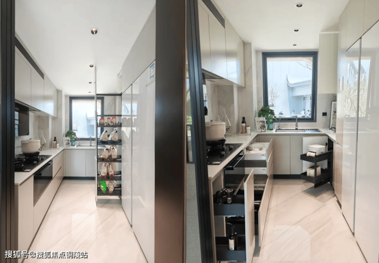 ④加载五金升级、调味拉篮、锅具拉篮,800碗碟三层拉篮,餐厅零食拉篮柜等;容量节省了约250L,相当于5.7个20寸登机箱,极致的收纳。