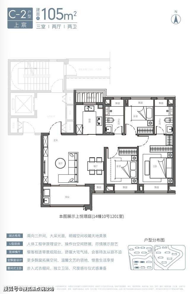 建面约105㎡3房2卫有两种风格(宽厅、竖厅),尤其是宽厅户型,设计格外惊艳。