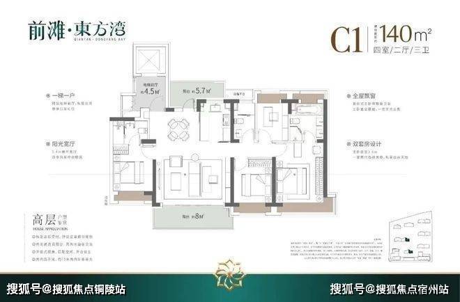 如果有进阶改善置业需求的客户,可以选择建面约140/175㎡4房2厅3卫!