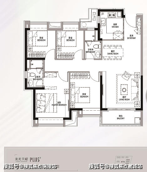 「龙光天曜」在户型设计方面也是下了很大的功夫,在保证户型方正的基础上,通过对住宅内部功能空间结构的科学设计,尽可能创造更多南向空间。