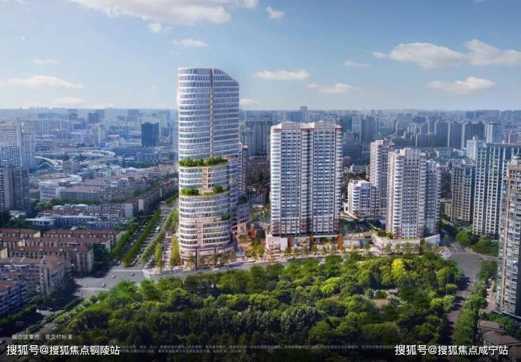 比如,选取珍珠蓝、香槟金、海派砖红等色彩,约270°圆弧建筑立面。