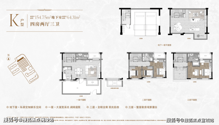 一楼和地下室主社交和志趣,二楼是子女的房间,三楼是主人休憩区。楼上楼下分层而居,各享私密,让子女私密主场与父母的静谧天地,互不干扰,即使业主举办小party玩到深夜,也不会打扰长辈们休息!