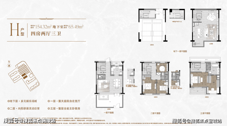 宴会、待客、健身、娱乐都有各自阵地!那在「興華里」,以建面约154㎡H户型为例: