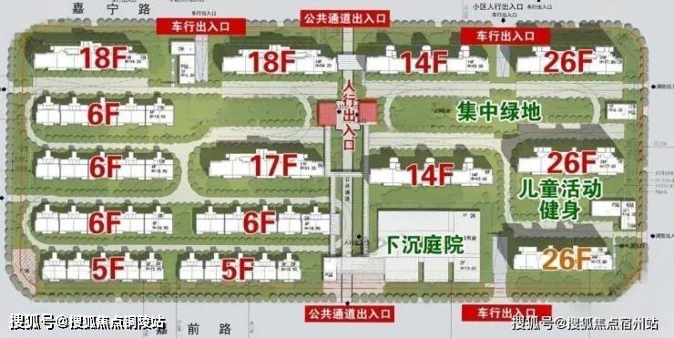 根据公示图显示,该项目的4个小板块最高层为项目东南角和西北角的26层高层,共有6栋,高度接近地块限高的80米(77.80米);18层的共有8栋;17层共有6栋;14层共有4栋;13层共有2栋;6层的共有4栋;5层的共有8栋。