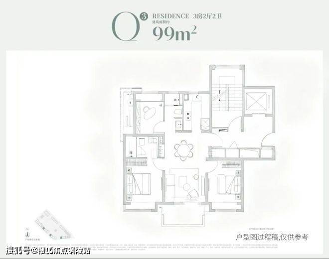 三开间朝南的飞机户型,搭配独立景观阳台,既保证了各卧室的私密性,又实现了优秀的南北通透效果,以舒适门槛即可抢占滨江价值高地,绝对是手慢无的热门之选。