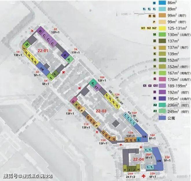 22-01地块占地面积1.1万平方米,总建筑面积5万平方米,包括4栋住宅楼、2栋商业;22-03地块占地面积1.6万平方米,总建筑面积6.7万平方米,包括7栋住宅楼、2栋商业;22-04地块占地面积0.9万平方米,总建筑面积3.8万平方米,包括3栋住宅楼、2栋商业。
