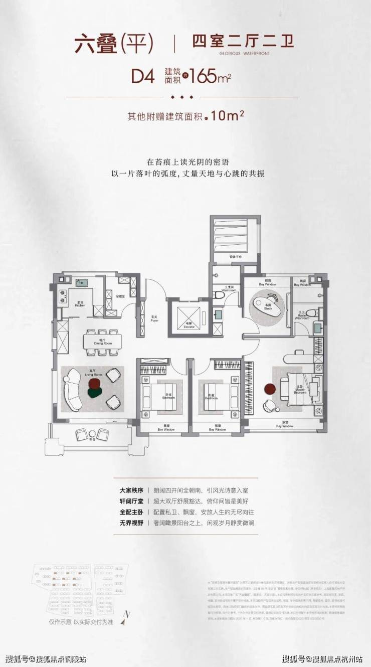洋房:得房率85%-92%,层高3.15 米,270° 飘窗、四开间朝南、横 / 竖厅双选,空间开阔、实用性强