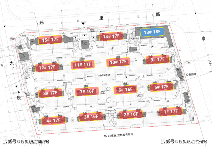 整个社区由4栋16层、10栋17层小高层组成;约2.2的容积率,低于市面上常规的2.5容积率的小区。栋距更宽阔,视野无遮挡。