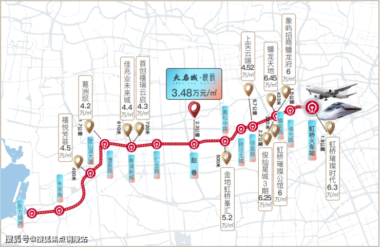 【轨交17号线】项目距赵巷地铁站约4km,6站直达大虹桥交通枢纽: