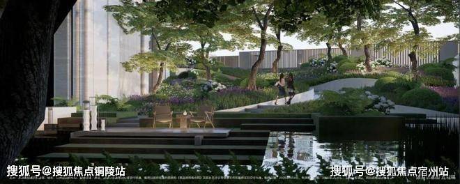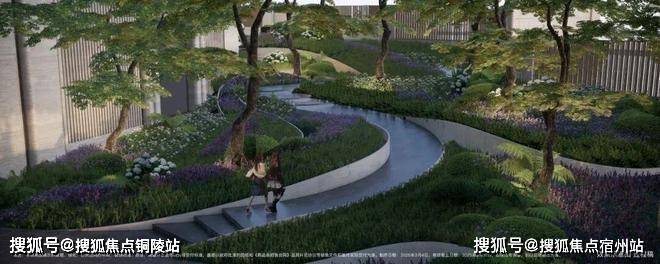 通过景观设计,将小区景打造成了立体台地花园,设置缓坡、下沉式花园、台阶等,让整体景观表现出立体层次感,错落有致。