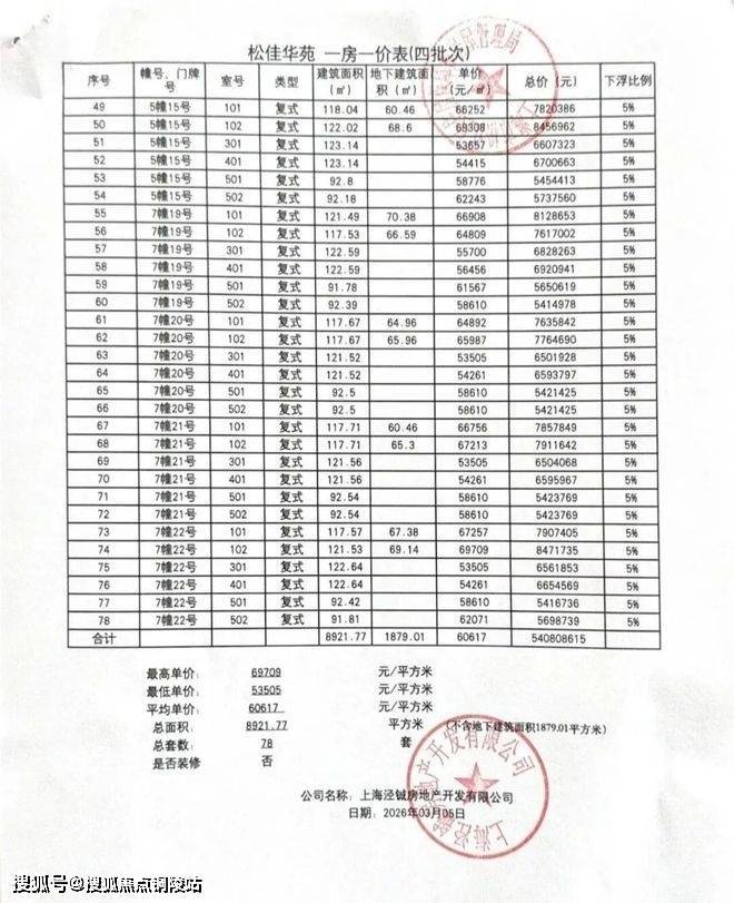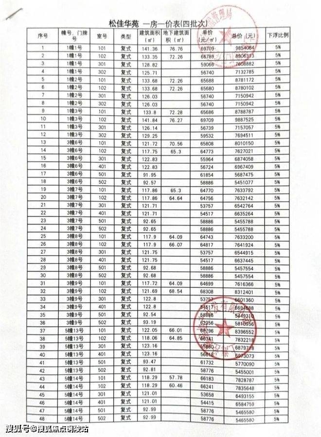 一房一价表如下