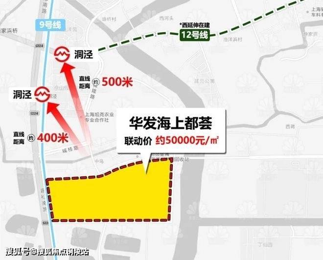 交通方面,该地块距离9号线洞泾站,直线距离约400米,距离在建地铁12号线西延伸段,直线距离约500米。地铁12号线西延伸段,是松江继9号线的第二条轨交地铁线,预计2027年年底通车。自驾可从嘉松南路、沈砖公路等主干道到达各处。