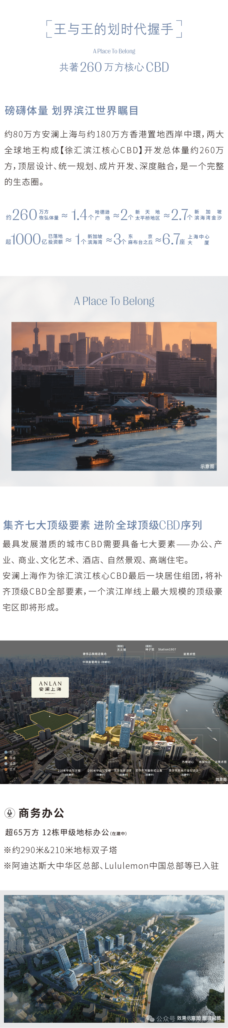 另一方面以安澜上海大盘形态为枢纽,串联徐汇滨江向心辐射,并带动徐汇区中下游板块和产业发展的全新局面。两大地王项目合力擘画约260万方崭新的徐汇滨江封面。